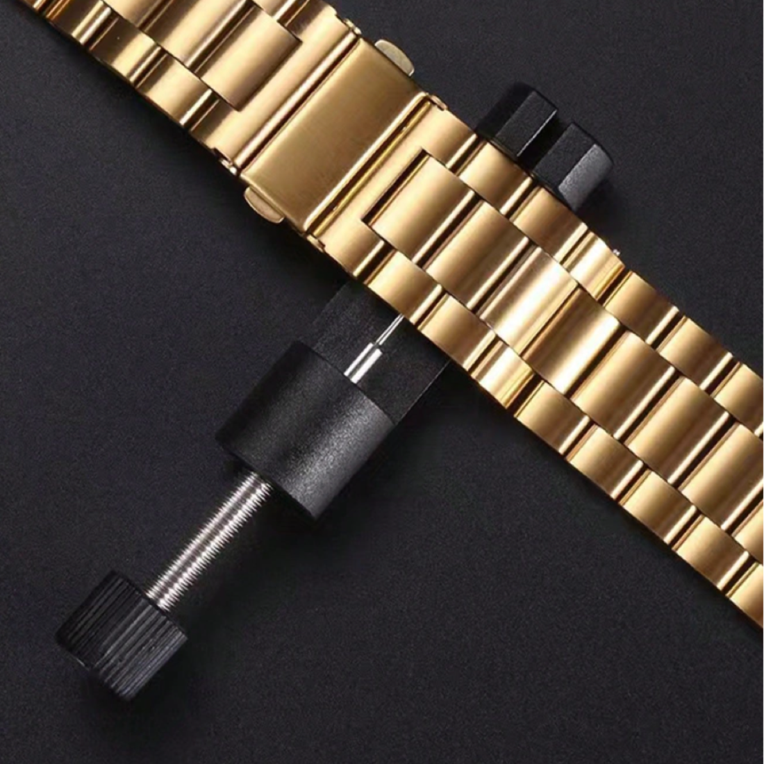 Acest dispozitiv special conceput pentru ajustarea brățării ceasului îți permite să personalizezi cu ușurință lungimea brățării, pentru o potrivire perfectă și confortabilă pe încheietura mâinii. Ușor de utilizat, cu un design compact și ergonomic, acest instrument facilitează îndepărtarea sau adăugarea de zale la brățările metalice, fără a fi nevoie de un specialist. Ideal pentru pasionații de ceasuri care doresc să își ajusteze brățările rapid și eficient, fără riscuri de deteriorare a brățării sau a ceasului.